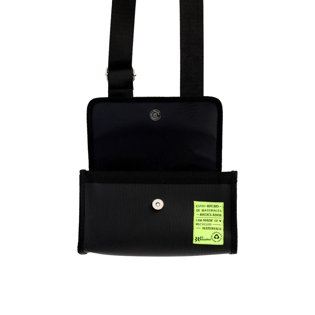 ¿Bandolera? Sí. ¿Cartera? También. ¿Sobre? Obvio. Esta riñonera se adapta a tu ritmo, tu estilo y tu día. Y lo mejor: está hecha con materiales reciclados que cuentan una historia.